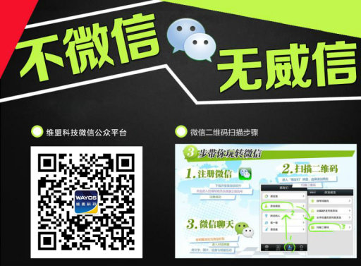 扫描下方二维码或查找我们的微信号码woyaowifi:微信添加朋友——搜号码——输入woyaowifi添加关注,实时掌握维盟科技新品发布及网络行业相关资讯更有千元免费流控送给您!