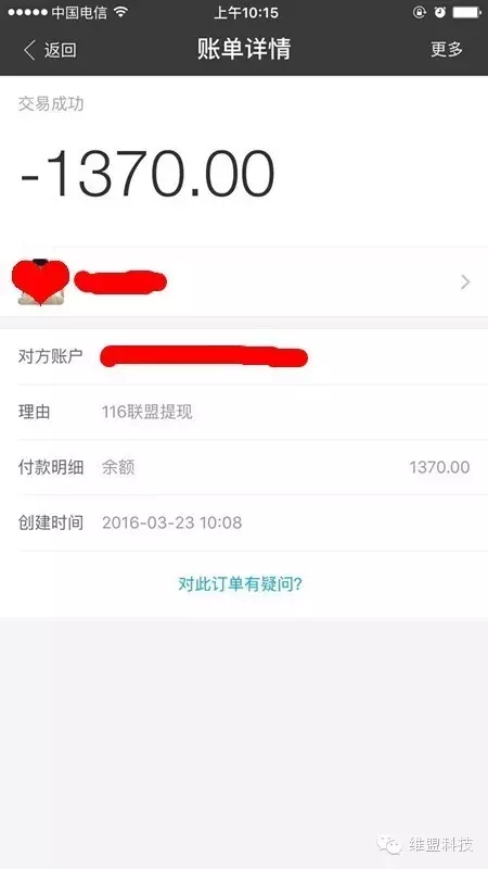维盟116联盟:提现已到帐!免费WiFi赚钱So easy