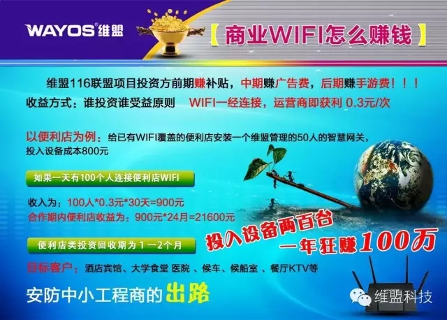 在标榜以劳模为荣、以偷懒为耻时代基准下,小编隆重向大家推荐WayOS这位新时代的超级WiFi赚钱劳模——维盟116联盟!