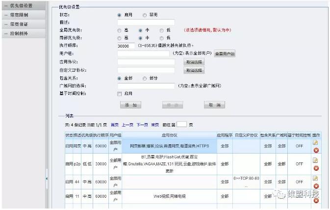 最高优先级: 网络游戏+常用协议 == 上行6M 下行 20M (保证带宽);