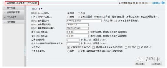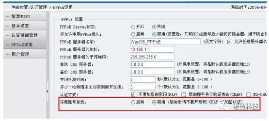 确定PPPOE Server状态是开启(如下图所示),让电脑使用‘带宽拨号’,账号和密码为‘用户管理’中的用户。(路由器默认的用户管理账号wayos密码wayos)电脑拨号成功之后,使用服务器地址http://10.198.1.1访问路由器的管理界面。