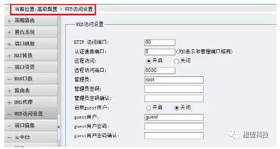 例如更改的端口为88,访问地址则变为:http://192.168.1.1:88。(访问端口位置:‘高级配置’‘WEB访问设置’:HTTP访问端口)