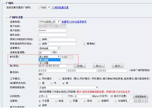一般来说,维盟路由器的MTU值是默认值,更改MTU值可提高路由器的效率,但MTU值超过ISP要求将无法进行传输,所以如无特殊需要,最好是保持默认!