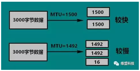▲  电脑MTU值<网络MTU值,传输没障碍,可能会浪费带宽,但未能完全利用网络给予的数据包传输尺寸的上限值,传输能力未完全发挥,造成带宽浪费!