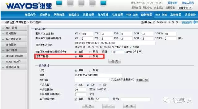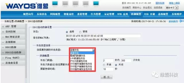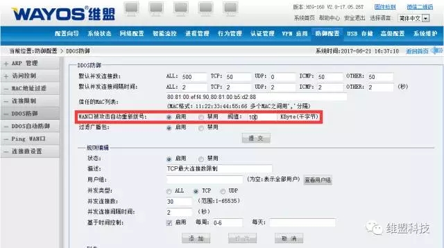 2、设置WAN口被攻击后自动重拨,一旦拥塞崩溃会重拨连接外网;