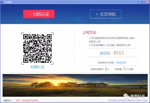 针对此情况,维盟智慧WIFI网吧客户端也推出网吧二维码扫码认证上网功能,