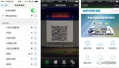 (苹果手机使用扫码二维码上网)连接SSID—>打开微信扫一扫走微信连WIFI流程—>唤醒微信—>走强制关注流程—>关注成功点击完成并上网