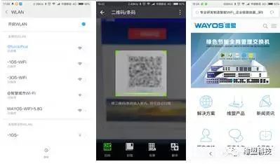 (安卓手机使用扫二维码上网流程)连接SSID—>打开微信扫一扫—>跳转到认证后地址—>认证完成