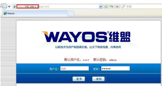 一、在“浏览器”输入路由器地址(默认http://192.168.1.1),输入账号和密码(默认为root和admin),进入维盟路由器管理界面。