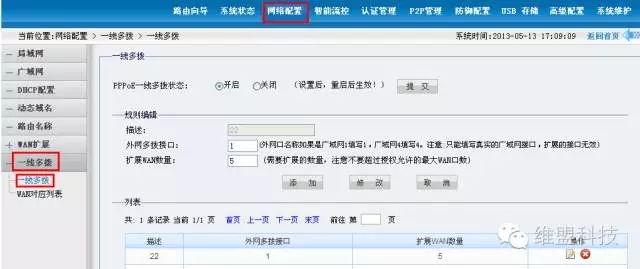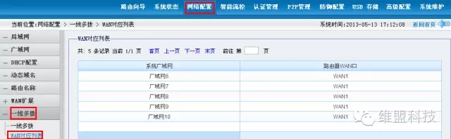 重启路由器就可以在“WAN对应列表”中看到你添加的广域网数了,如下: