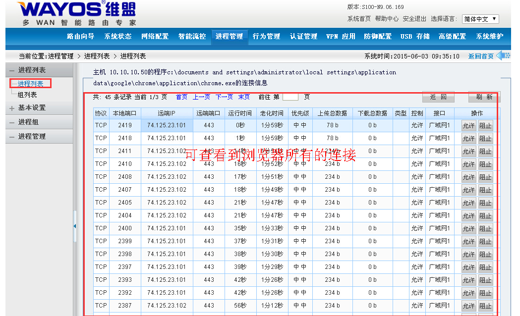 随着用户资源的增加,必须对一些资源(比如游戏、视频等)进行管理,对它们进行限速,对它们进行走另外通道(WAN口)的策略,让网络资源更好的管理与畅通。所以就需要用到进程管理功能了!WayOS维盟路由器的进程管理功能,可以应用于电信、网通、双线或者多条ADSL网吧,企业,小区等环境。今天包老师为大家讲讲如何使用维盟的进程管理功能。
