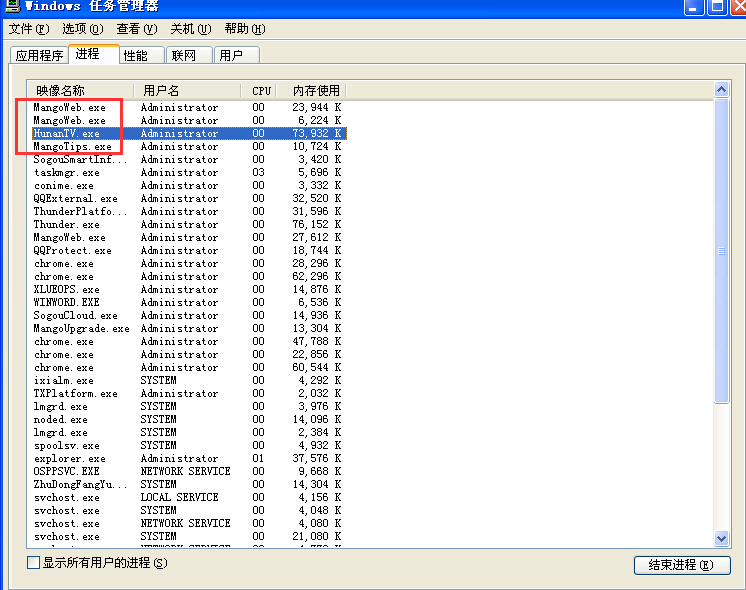 在本地主机Ctrl+Alt+Delete,这儿我们选择芒果TV的进程。